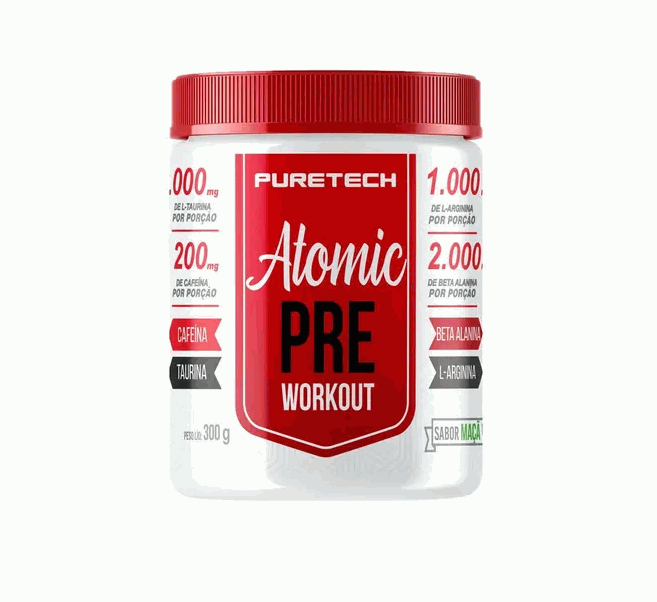 Prepare-se para elevar seu treino a um novo nível com o **ATOMIC PRE WORKOUT** da **PureTech**. Com um sabor refrescante de maçã verde, este pré-treino foi desenvolvido para oferecer um impulso energético poderoso e uma performance aprimorada. Cada porção de 10g (2 dosadores) contém 200mg de cafeína, proporcionando a energia necessária para enfrentar seus desafios de treino com intensidade. A fórmula avançada combina ingredientes selecionados para maximizar seu desempenho: - **Cafeína:** Potente estimulante que aumenta a energia e a concentração. - **Taurina:** Ajuda a melhorar a resistência e a recuperação. - **Beta Alanina:** Reduz a fadiga muscular, permitindo treinos mais longos e intensos. - **L-Arginina:** Promove a vasodilatação e o fluxo sanguíneo para músculos mais volumosos e melhor desempenho. Além disso, o ATOMIC PRE WORKOUT é livre de glúten, lactose e soja, tornando-o uma escolha ideal para quem possui restrições alimentares ou prefere evitar esses ingredientes. Aumente sua força, foco e resistência com o **ATOMIC PRE WORKOUT** e sinta a diferença no seu treino! **Instruções de uso:** Misture 10g (2 dosadores) em 200ml de água e consuma cerca de 20 a 30 minutos antes do treino. **Aviso:** Contém cafeína. Não recomendado para menores de 18 anos, grávidas ou lactantes. Consulte um profissional de saúde antes de iniciar qualquer suplemento.